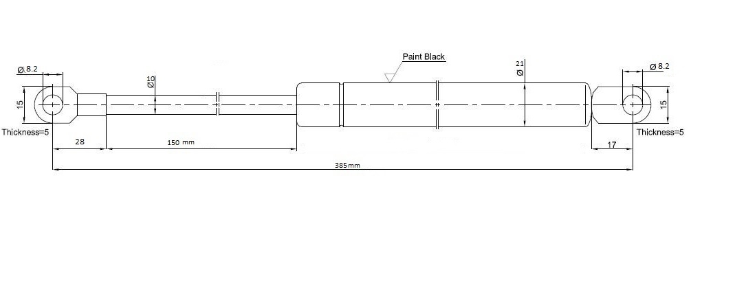 La longueur des ressorts a gaz 350N, 450N et 500N est de 385mm et l'angle d'ouverture d'environ 45°.