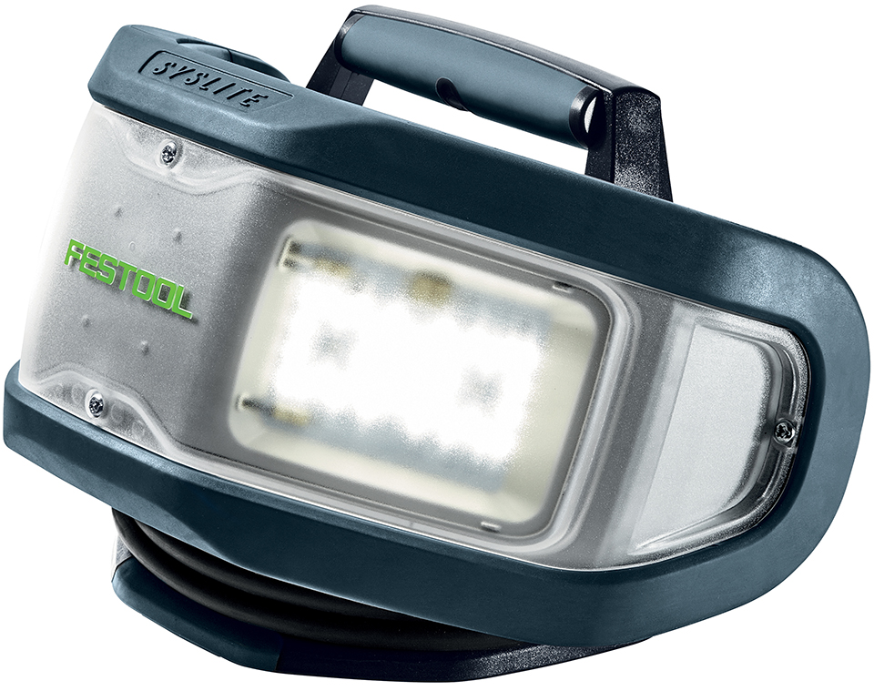 - Flexible options for use: placed on the floor or on a table, on a Festool tripod or hung as desired on a hook thanks to the possibility of hanging on the back of the SYSLITE DUO