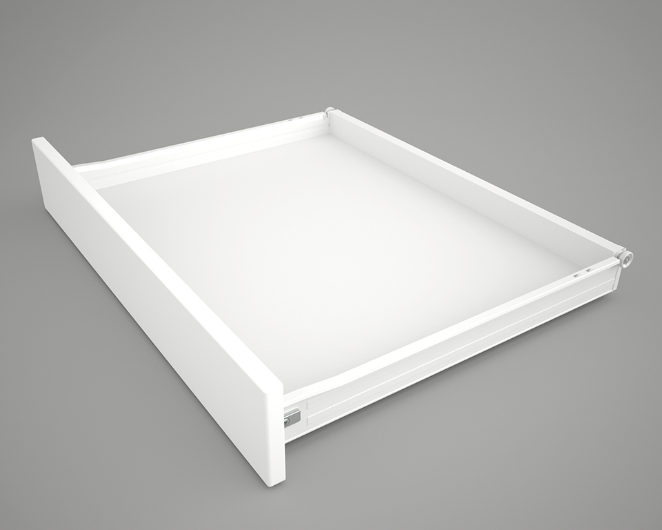 FGV tiroir, glissiere a rouleaux avec côtés, H53/400mm/25kg, blanc