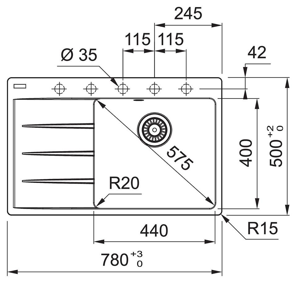 | Forme de l’évier | Carré |