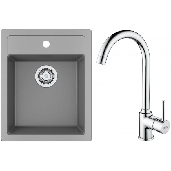 Franke Tectonite ensemble T100Š (évier SID 610-40 Gris + robinet FP 9000.031 Chromé)