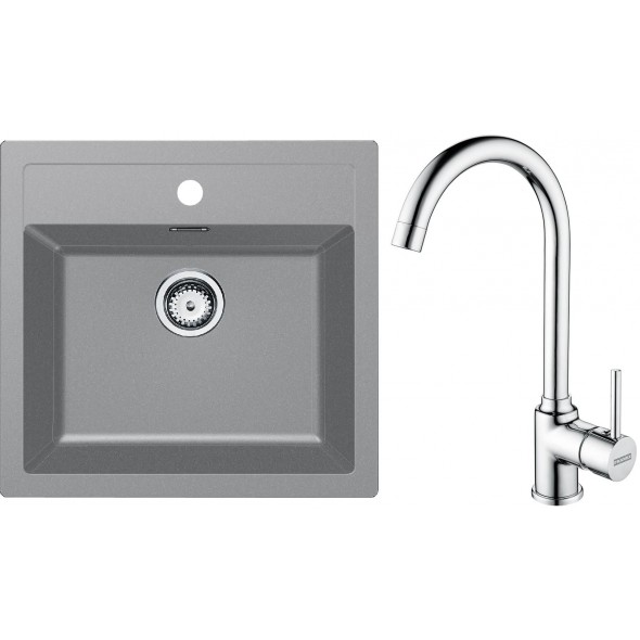 Franke Tectonite ensemble T102Š (évier SID 610 Gris + robinet FP 9000.031 Chrome)