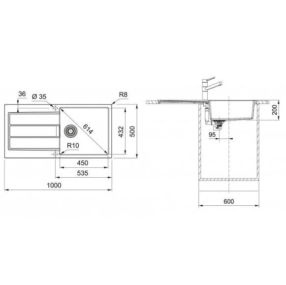 FRANKE ensemble T78Č S2D 611-100 noir + FP 9000.071 onyx