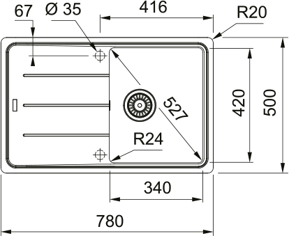 FRANKE évier BFG 611-78 780x500mm ardoise grise