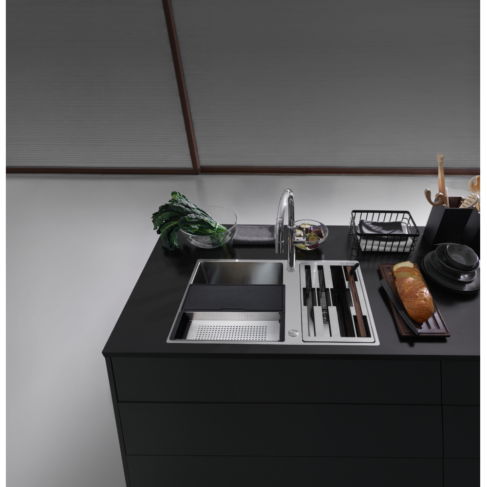 Facilement combinable, parfaitement organisé. Box Center est une solution intelligente et tres pratique avec un design attrayant et convaincant. Deux plaques parfaitement fusionnées offrent un espace pour le stockage et le séchage des accessoires de cuisine souvent utilisés, qui sont rangés directement la ou vous en avez le plus besoin.