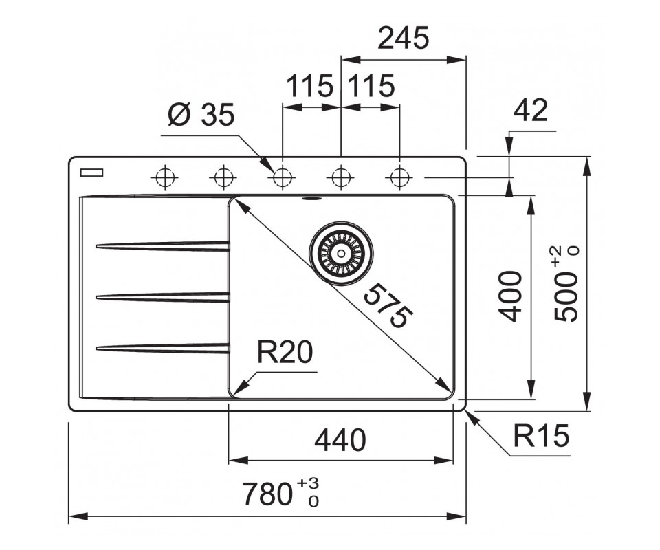 Évier : 440 × 400 × 200 mm