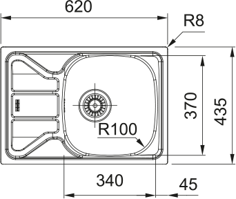 FRANKE évier FLN 611-62/44 620x435mm inox