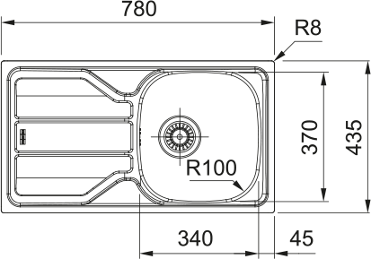 FRANKE Évier FLN 611-78/44 780 x 435 mm en acier inoxydable