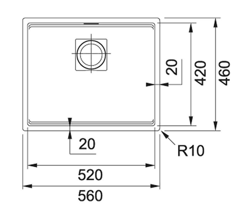 Découpe : 520 × 420 mm (Rayon 10 mm)