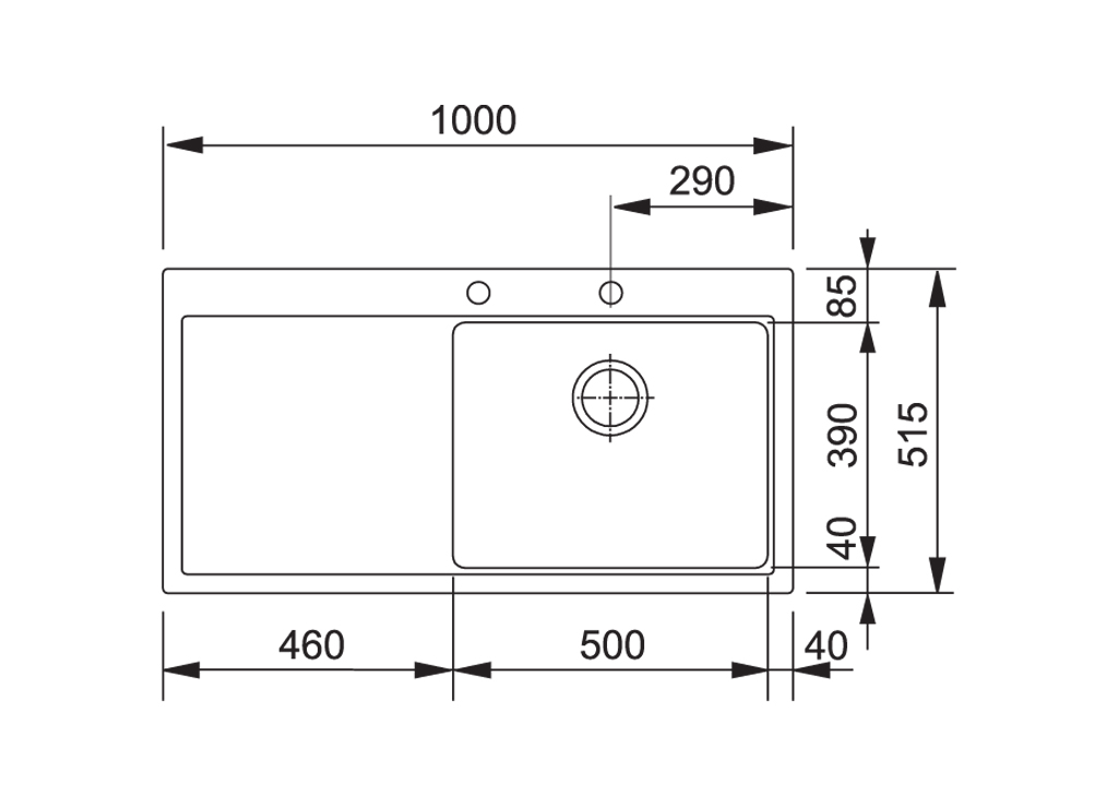 FRANKE évier MTG 611/2P 1000x515mm blanc LED