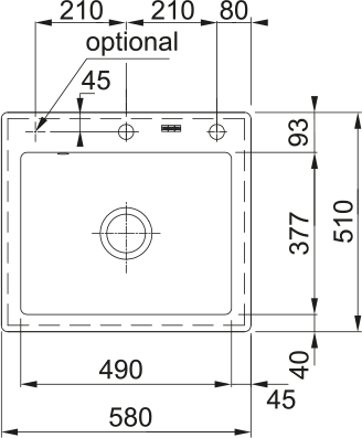 Évier : 490 × 377 × 190 mm