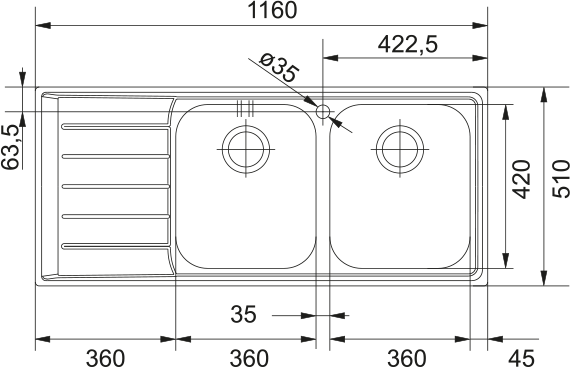 Éviers : 2 × 360 × 420 × 200 mm