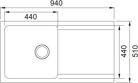 Évier : 440 × 440 × 190 mm