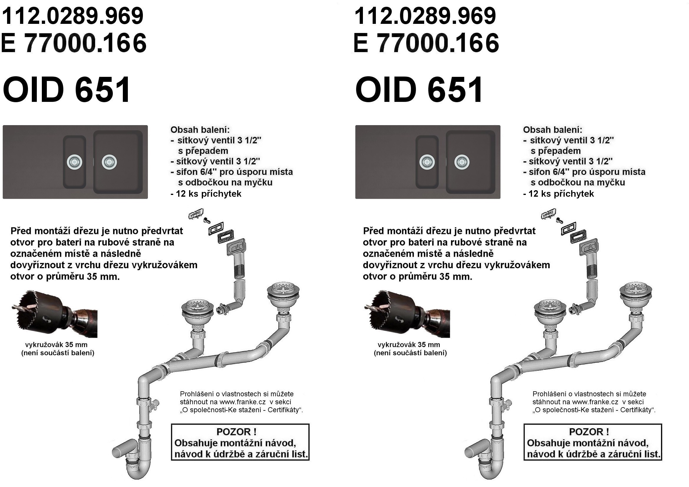 Attention ! Sans trou pour robinet (le trou peut etre percé avec un foret trépan directement lors de l'installation)