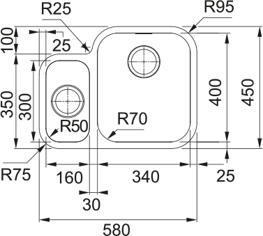 FRANKE Évier SRX 160/7 580x450mm inox