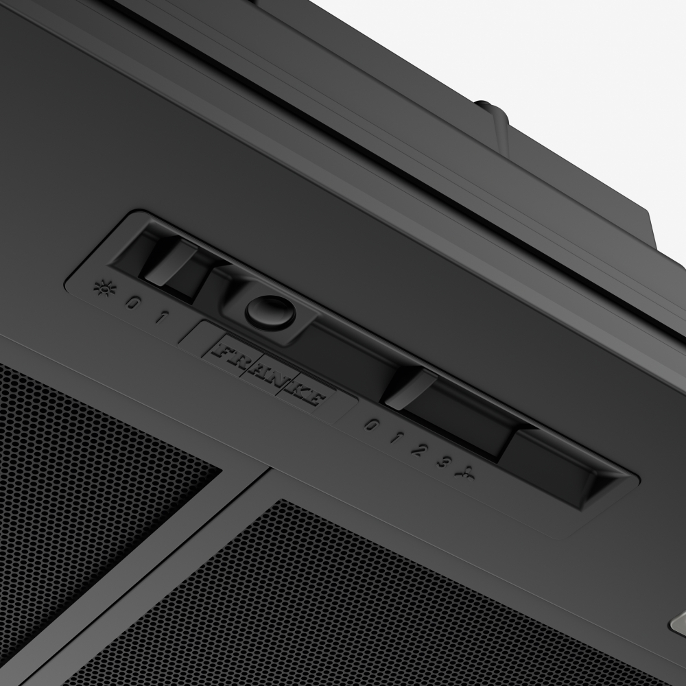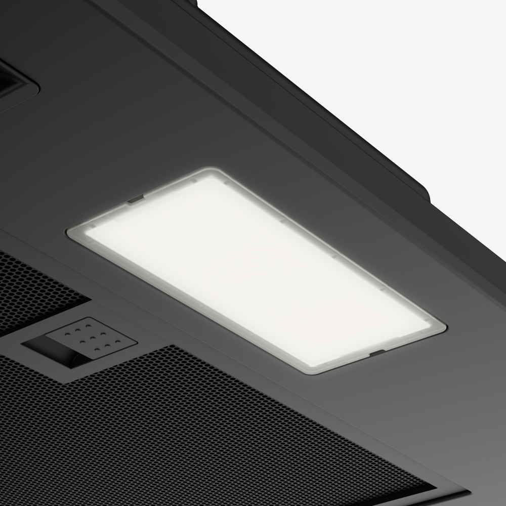 Extracteur encastrable Box Smart. Finition noire. Classe énergétique D. Interrupteurs coulissants. 3 niveaux de puissance. Note : Prix hors contribution au recyclage. 305.0689.925