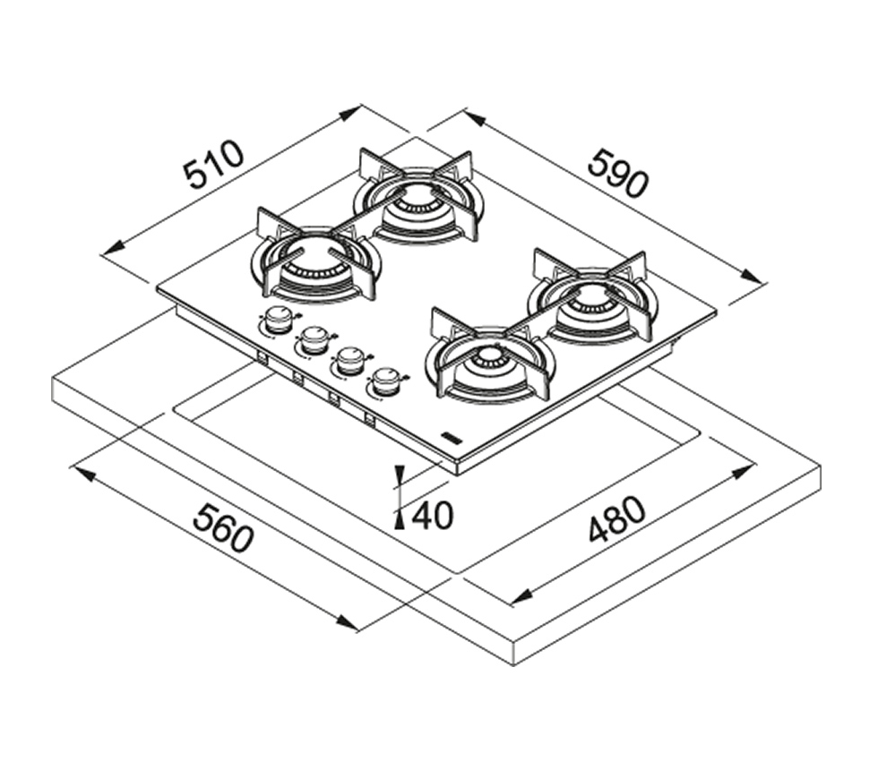 FRANKE Plaque gaz FHCR 604 4G HE BK C verre noir