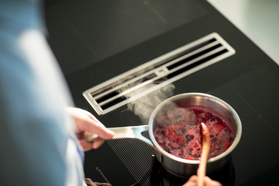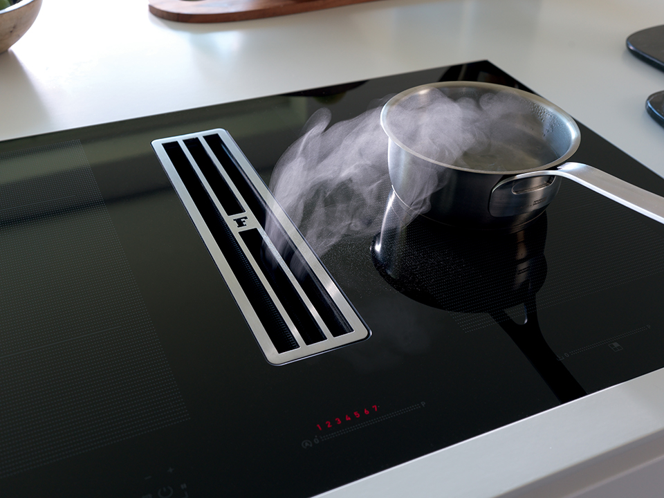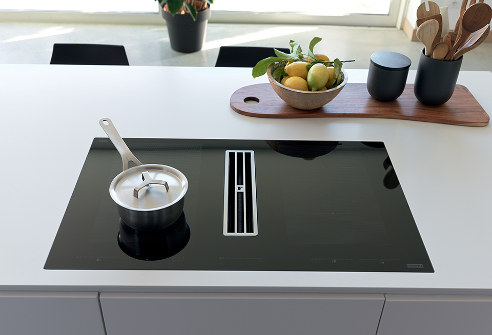 FRANKE Plaque induction avec extracteur vapeur FMA 8391R HI verre noir/blanc gra