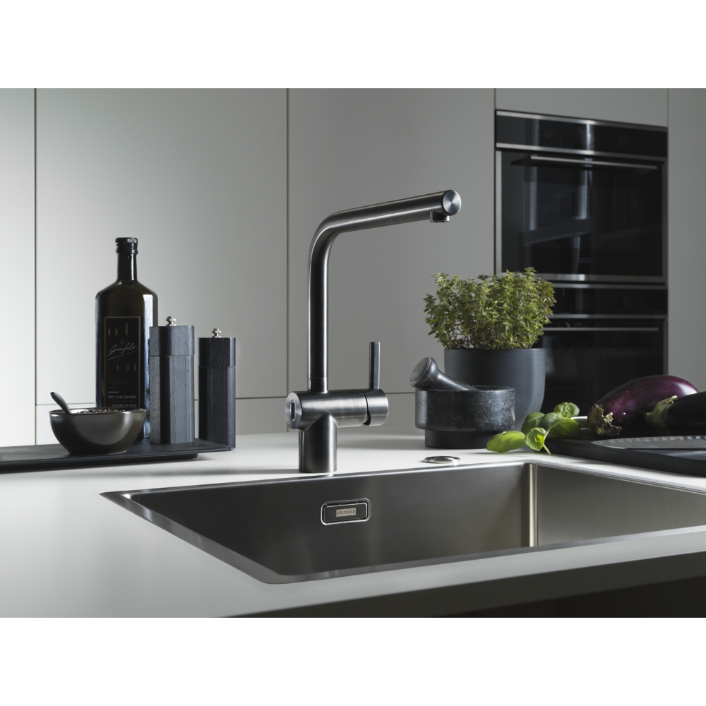 Atlas Neo Sensor est un robinet de cuisine hybride a mélangeur. Vous pouvez le commander sans contact via un capteur infrarouge ou de maniere classique avec un levier latéral du robinet.