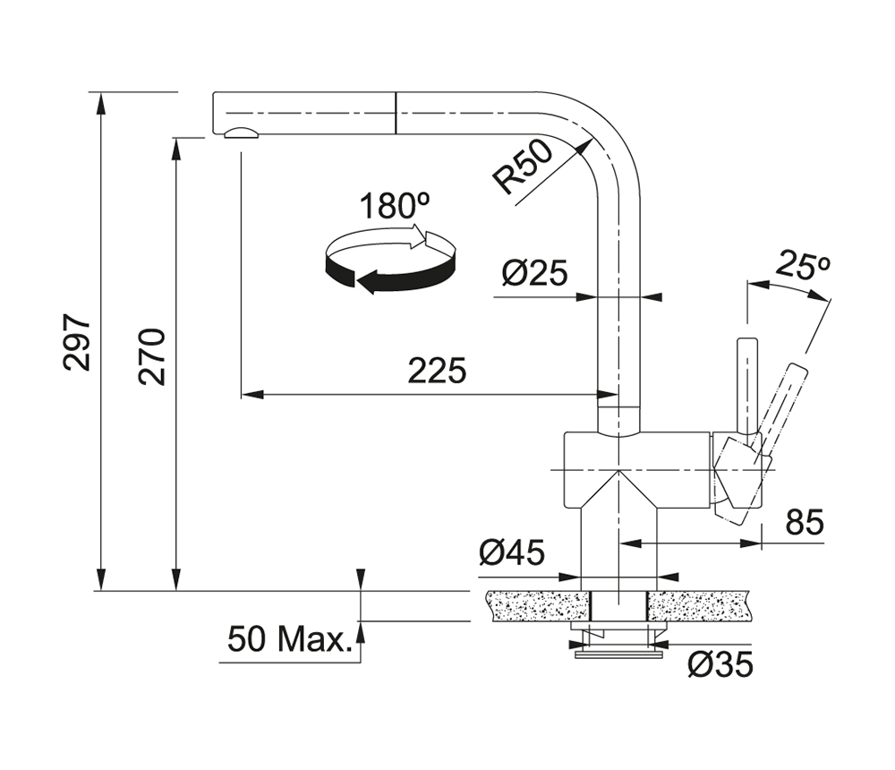 Le capteur réagit immédiatement au mouvement de la main a une distance de 5-10 cm et distribue environ 2,5 l d'eau par activation, car il se ferme automatiquement apres 30 s !