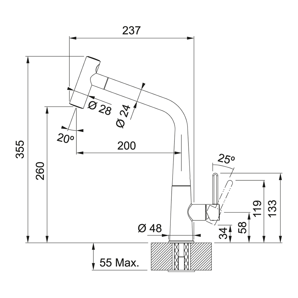 Franke robinet FG 5188 ICON S avec embout extractible, S régulation Douche/Débit Noir mat