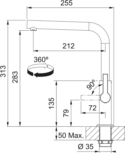 FRANKE Robinet FS 2841.901 Maris Slim sans douche noir mat