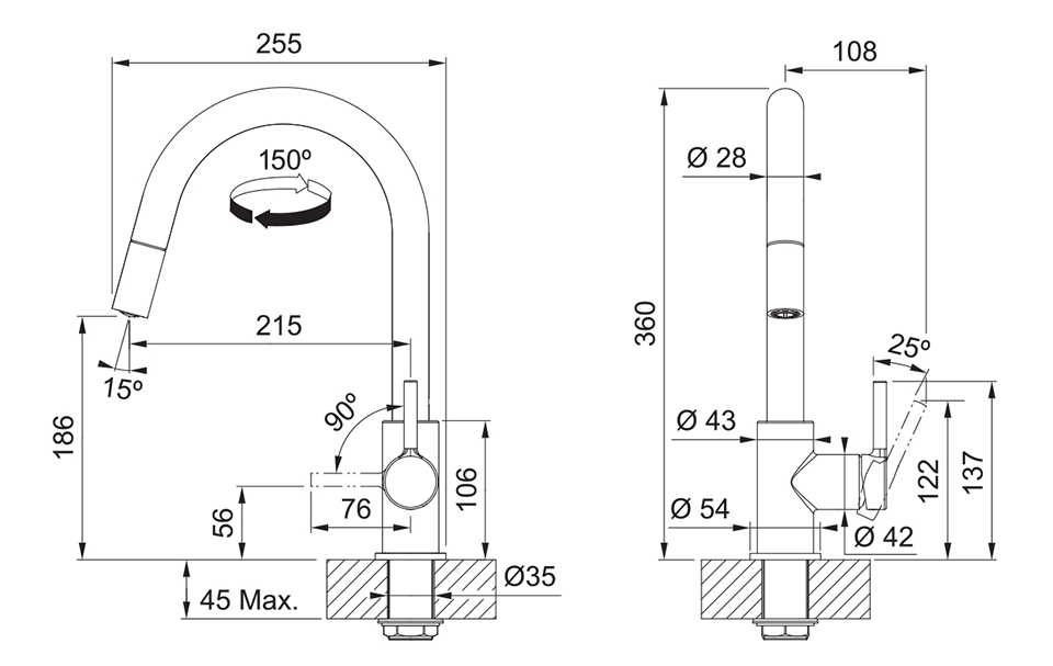 Rotatif 150°