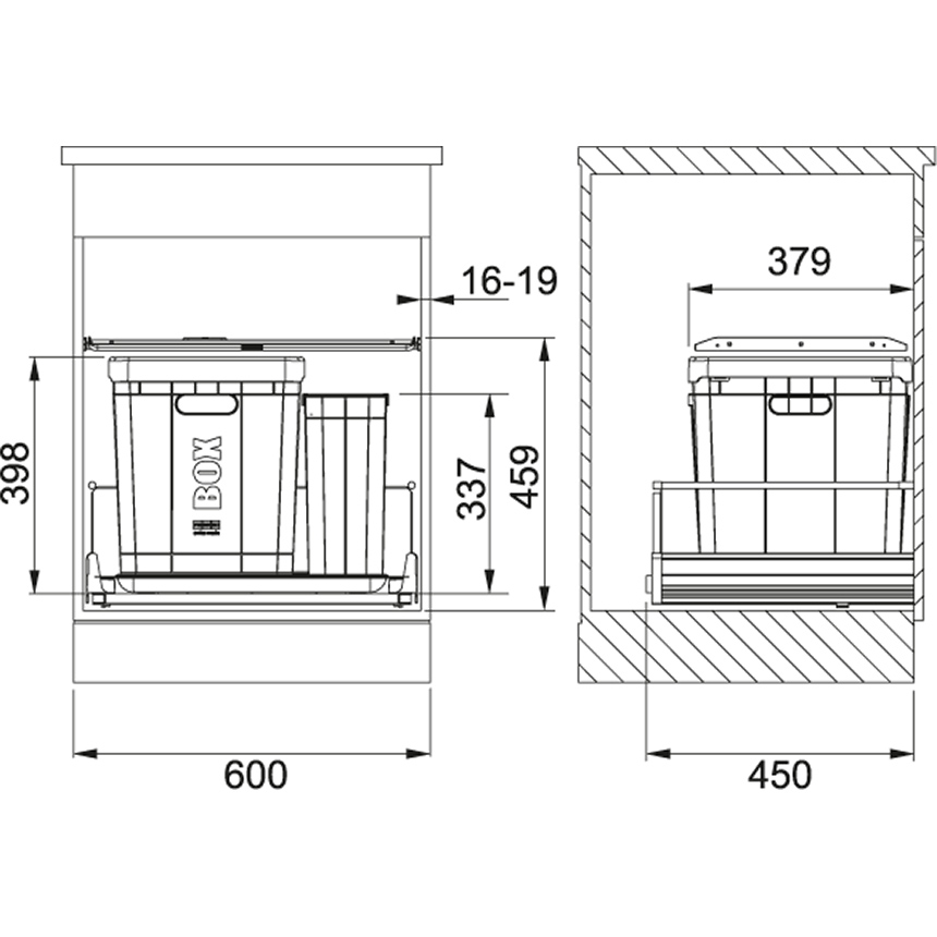 Le panier s’insere dans un tiroir coulissant a sortie totale équipé d’un reling longitudinal ou d’une haute paroi latérale.