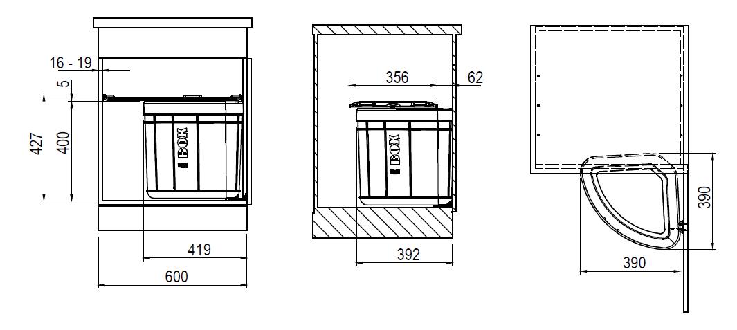 Le cadre de fixation assure une fixation solide du sac (ou de 2 sacs) ainsi que leur remplacement facile et une utilisation maximale du volume du panier.