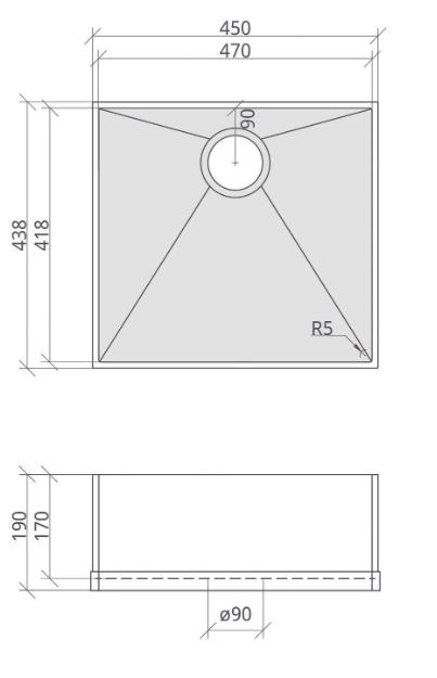 GetaCore kuchyňský dřez bez přepadu s nerezovým dnem.