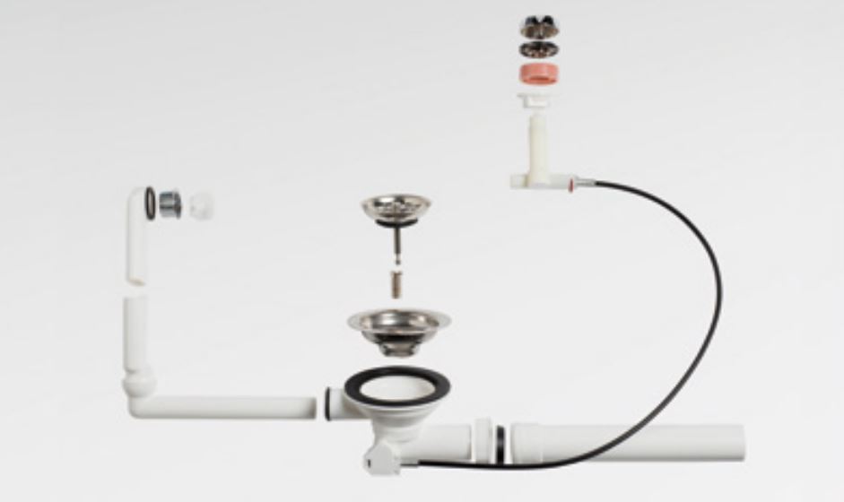 Odpad s chromovaným excentrickým ovládáním a přepadem pro GC kuchyňské dřezy.