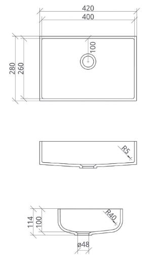 GETACORE umyvadlo GC-RG-400 GC2011 Titan White bez přepadu