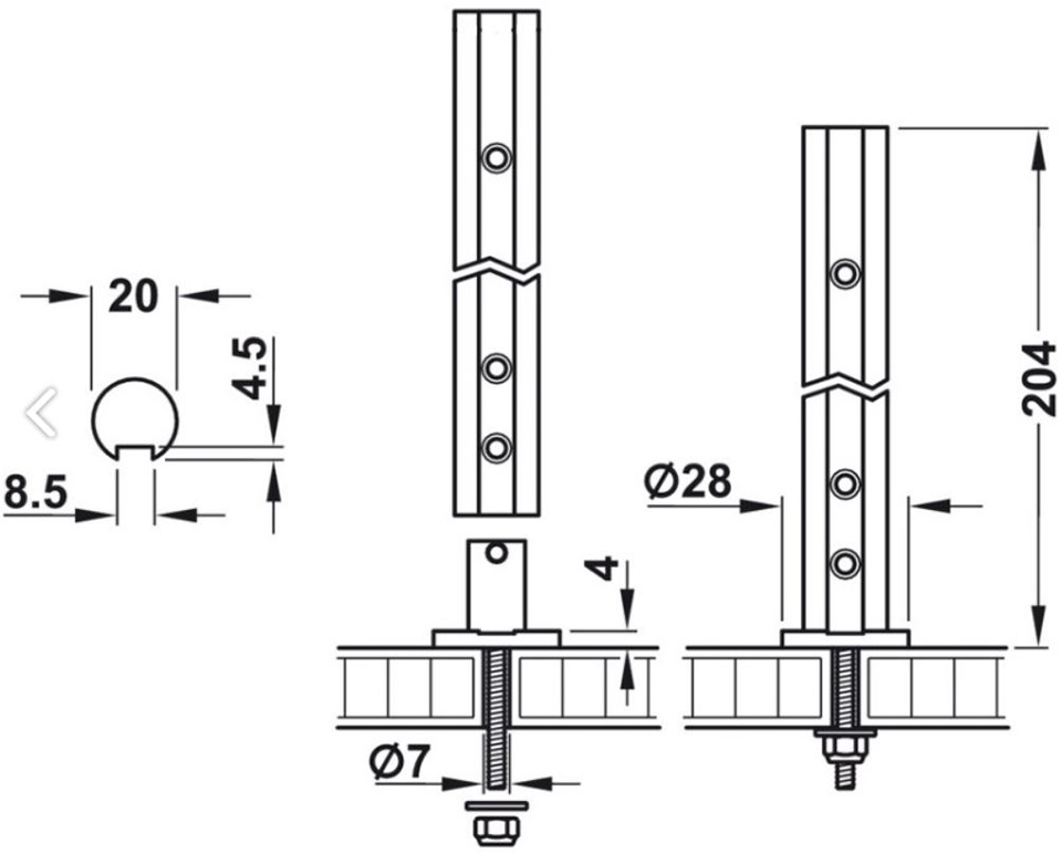 If you have a hob on an island, these holders with glass are a suitable protection against pollution of the surroundings while cooking. The brackets are mounted through the worktop using a threaded rod and an M6 nut, which is included in the package in 60 mm and 120 mm lengths. The glass sits in the groove and is secured with a silicone strap. The glass is not included in the price, it is ordered separately. Glass dimensions: height 200 mm, thickness 8 mm, any length. Material: zinc die-cast zamak with surface treatment imitating brushed stainless steel Holder dimensions: stand diameter: 20mm, foot diameter: 28mm, total height 204mm