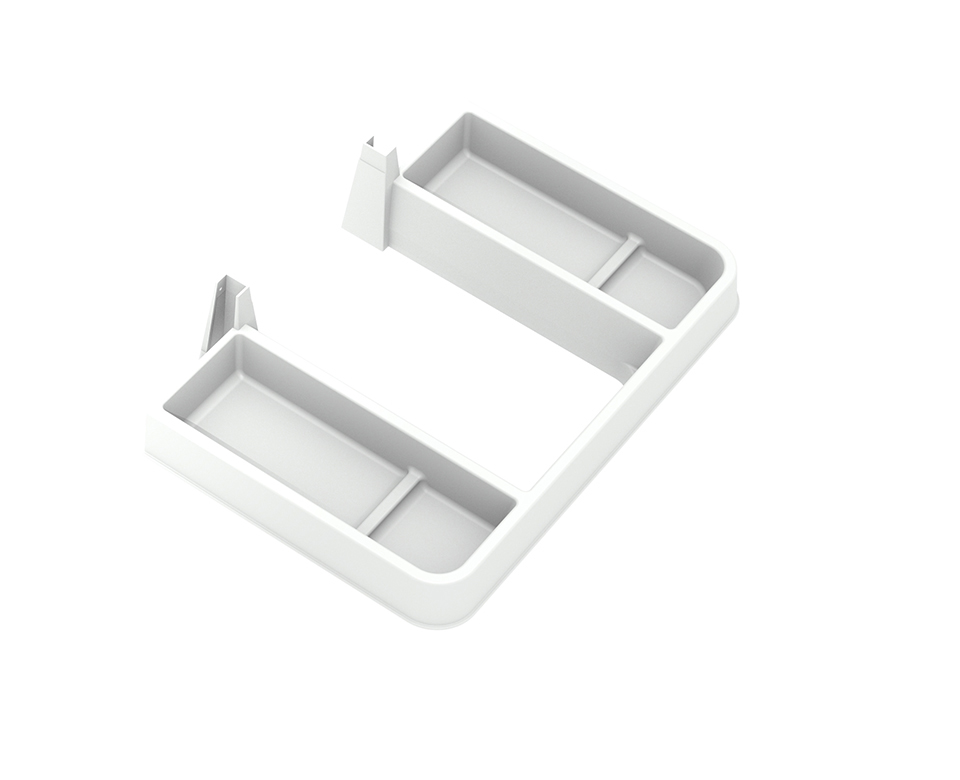 Élément de protection en polypropylene pour tiroir sous lavabo, équipé de compartiments latéraux.