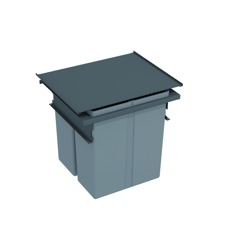 Sorter pour Legrabox C (non inclus) profondeur 500 mm, cadre métallique, pour largeur 600 mm, capacité 2x 40L, hauteur 505 mm, y compris couvercle encastré métallique