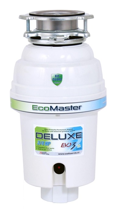 It is suitable for larger households. It is a great choice for all those who do not like to compromise and like to indulge in more luxury. From a technical point of view, this crusher brings perfection of all elements into the smallest detail. Compared to cheaper models, it has the largest crushing chamber, the best possible soundproofing of the chamber and the engine. The crushing ring is taller and additionally has a double row of perforations for faster and finer crushing. The longest warranty period is a matter of course. This shredder is also suitable for less demanding catering operations with a frequency of 50 - 200 meals per day. E.g. restaurants, pizzerias, cafes, maternity gray stoneware, smaller retirement homes, children's homes, boarding houses, patisseries, scnack bars, etc. surface finish necks - brushed matt stainless steel with EcoMaster logo. NEW generation crusher - EcoMaster EVO3 This crusher has undergone a third series of innovations. It is equipped with a wider neck made of stainless steel. The package includes a stainless steel plug which turns into a practical mesh when the center button is pressed. Compared to the previous one, the shredder has even smaller dimensions, so it is possible to place sorters for waste sorting into sink cabinets. Power and maximum crushing speed were of course maintained. Package components: • mounting instructions • Waste elbow with additional input for overflow / dishwash incl. flanges and screws • Removable silicone sleeve • High-quality stainless steel plug with strainer function