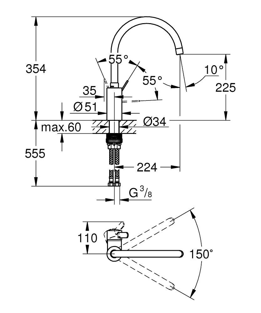 GROHE 30431000 Robinet VIA COSMO bec C chrome