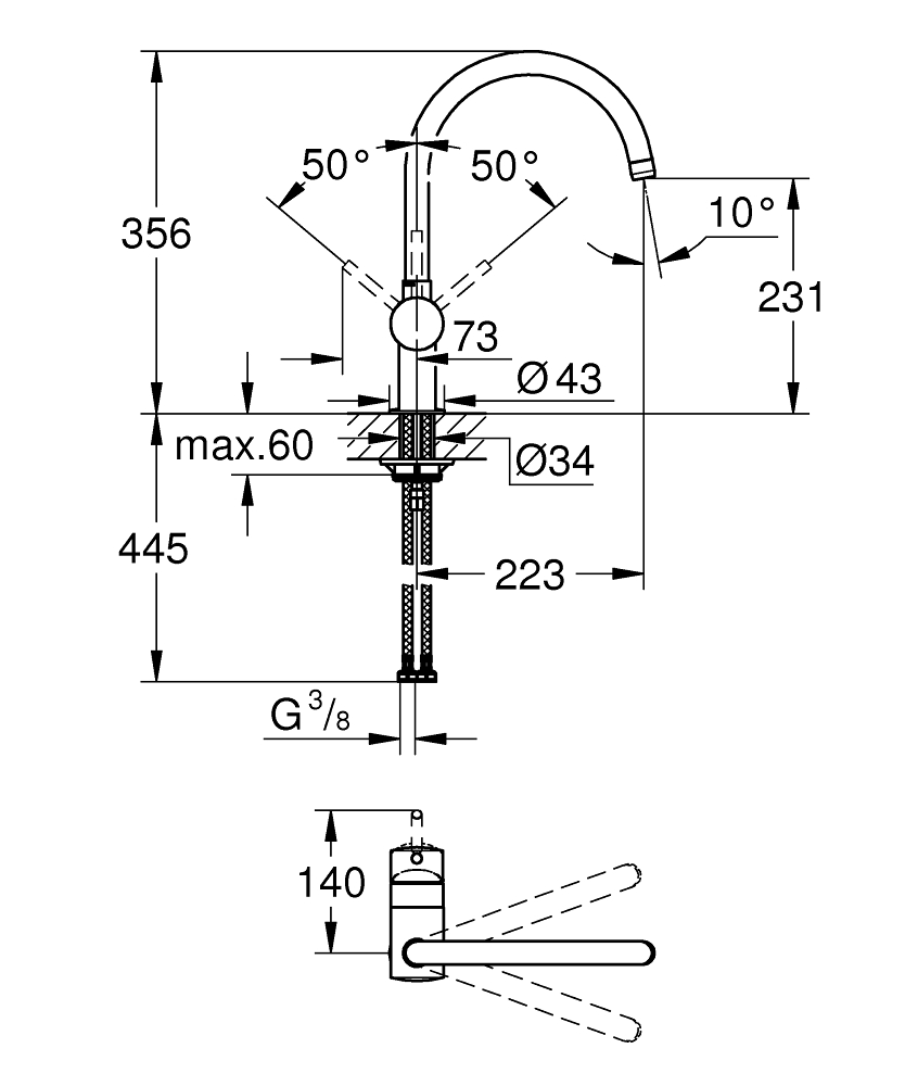 Le design épuré de ce robinet d’évier de la série Minta, dominé par un bec en forme de C, comprend de nombreux détails pratiques. La hauteur du bec est adaptée pour remplir aisément de grandes casseroles. L’angle de rotation du bec peut etre réglé a 0°, 150° ou 360°, avec la possibilité de faire pivoter librement le tube ou de le verrouiller dans l’une de ces positions. Au cour de ces robinets se trouve la technologie GROHE SilkMove, qui permet un contrôle fluide du volume et de la température de l’eau grâce a un mouvement doux du levier de commande. Le robinet bénéficie d’une finition mate attrayante GROHE SuperSteel en acier inoxydable, extremement résistante aux rayures et d’une longue durée de vie. Pour couronner le tout, l’installation de ce pack attrayant est particulierement simple et sans souci. Grâce a notre systeme d’installation facile, le montage ne requiert que quelques étapes simples. Pourquoi chercher plus loin quand vous avez trouvé le produit parfait ?