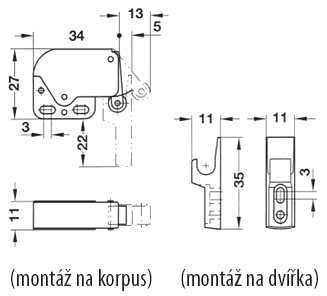 Mécanisme d’ouverture des portes sans utilisation de poignée. Les portes sont maintenues en position fermée par un crochet, une pression les ouvre. Pour la quincaillerie, il est possible d’acheter séparément un contrepartie de rechange (crochet) en plastique blanc 165458, qui est inclus dans ce kit.