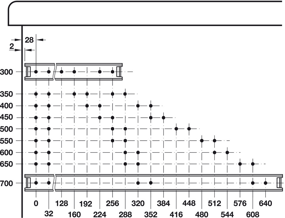 Kuličkový výsuv Accuride 2026 oboustranně výsuvný. Montáž na bok nebo na plocho. Použití pro oboustranně výsuvné zásuvky, aretace na obou stranách. Ocel zinkovaná. EB=19mm, maximální šířka zásuvky = světlá šířka korpusu – 19mm. Nosnost této délky při montáži na bok je 40kg/pár. Při montáži na plocho je nosnost snížena na 25% původní nosnosti.