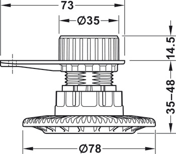 Glissiere en plastique a visser avec rondelle de montage diametre 35 mm, pour plinthes basses. Capacité de charge 150 kg.