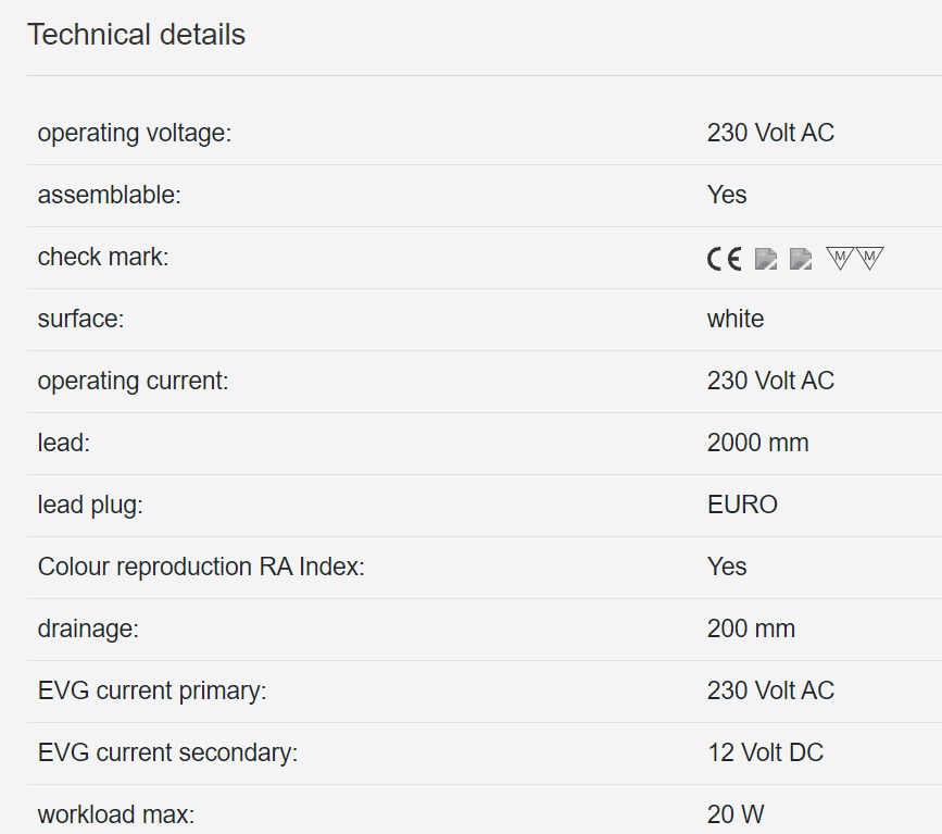 Transformateur 12V, 20W, 200-240V, 50Hz, 2m Europlug 1x M1.