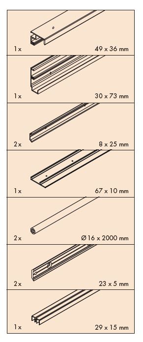HAWA 053.3321.220 Frontino 40 porte coulissante type M 1800-2199mm kit de guidag