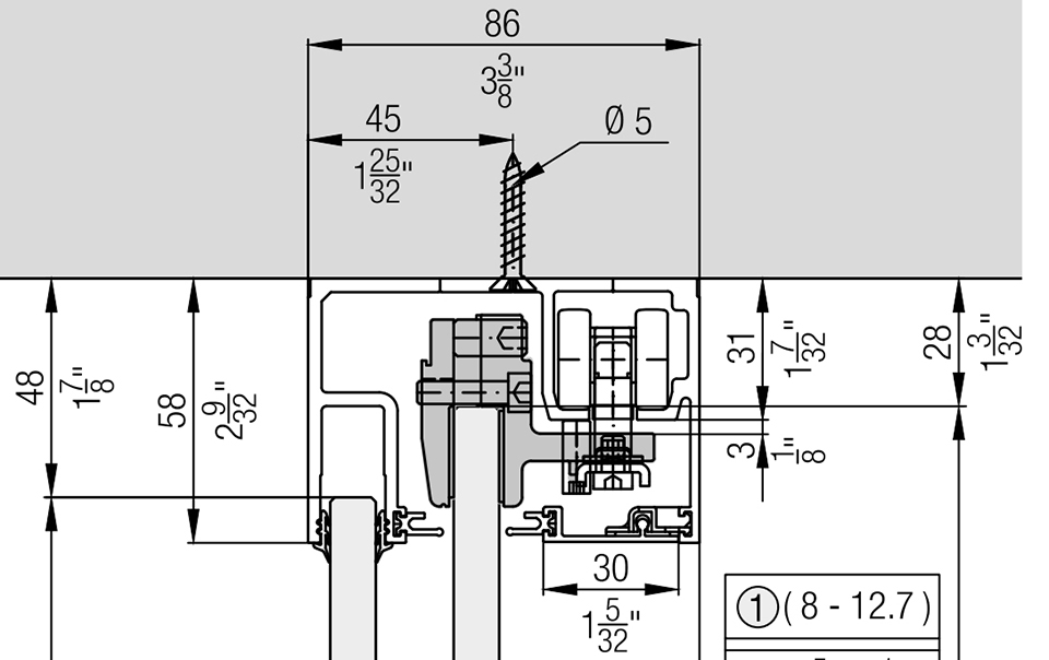 HAWA 057.3084.350 Porta 100 GWF guidage supérieur 3.5m elox