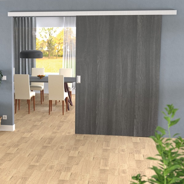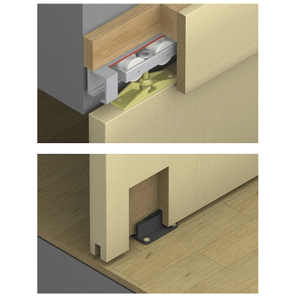 Quincaillerie pour porte intérieure coulissante jusqu'a 80 kg, y compris deux amortisseurs.