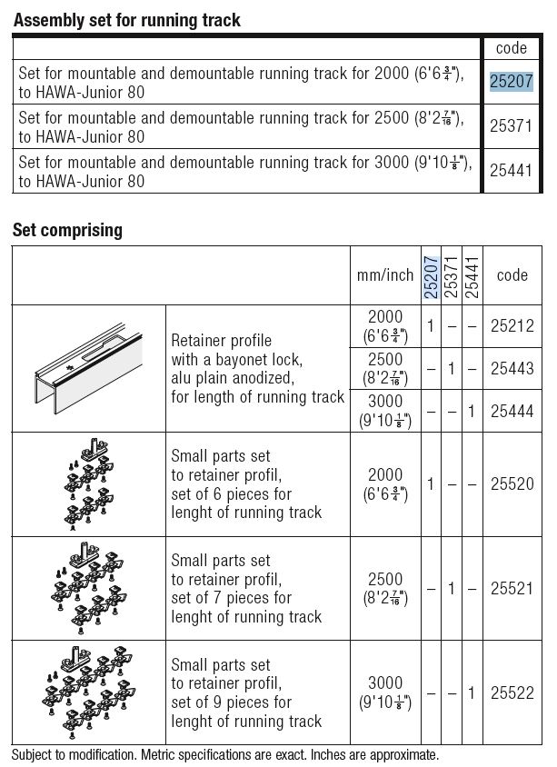 HAWA 25207 Junior 80/B-Pocket quincaillerie intérieure coulissante bandeau supér