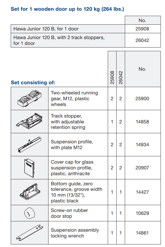 HAWA 26042 Junior 120/B quincaillerie intérieure coulissante ensemble de ferrure