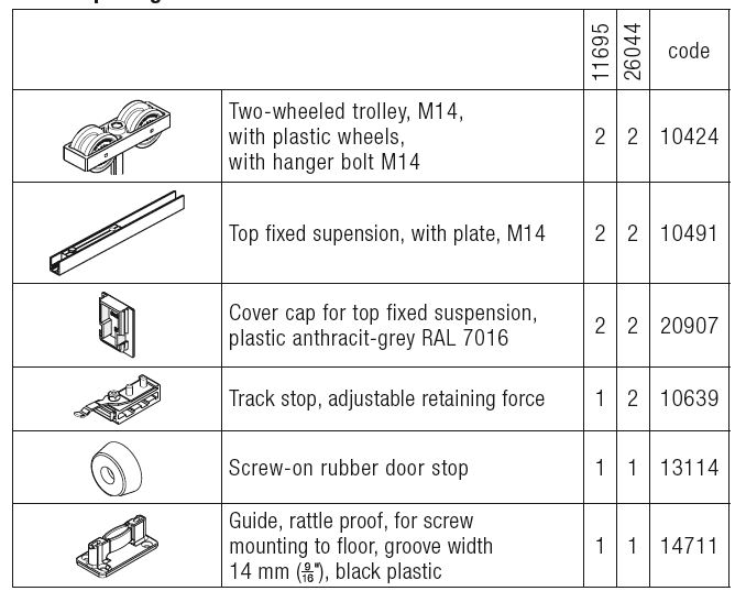 HAWA 26044 Junior 160/B quincaillerie intérieure coulissante ensemble de ferrure
