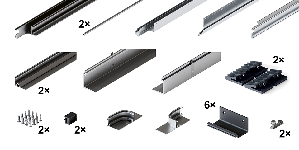 Hawa Folding Concepta III 20/25. Kit de guidage pour quatre vantaux, De + gauche, argenté, matériau aluminium.