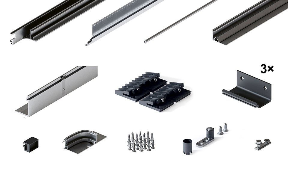 Hawa Folding Concepta III 20/25. Kit de guidage pour deux vantaux, gauche, noir, matériau aluminium.